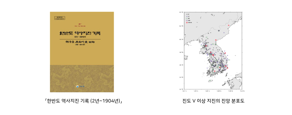 기상청은 《삼국사기》 《고려사절요》 《고려사》 《조선왕조실록》 《증보문헌비고》 《승정원일기》 《일성록》 《풍운기》 《천변초출승록》, 개인문집, 지방지 등에 기록된 지진을 정밀분석하고 각 지진 현상의 발생 일자, 발생위치(위·경도)와 진도를 정리하여 『한반도 역사지진 기록 (2년~1904년)』으로 집대성하였다.
